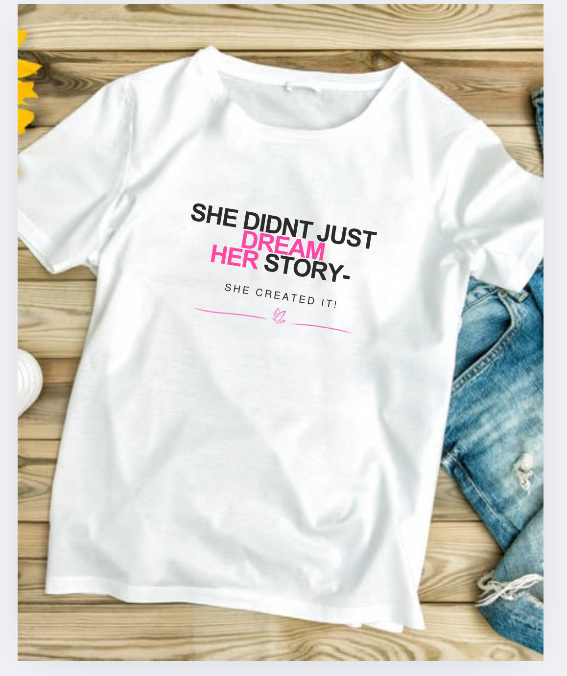The Dream Her Story T-shirt inspires confidence and creativity, blending comfortable fabric with a meaningful message about pursuing dreams. Designed for everyday wear, it encourages you to embrace your aspirations boldly and share your unique story with the world. Perfect for those who believe in turning dreams into reality.